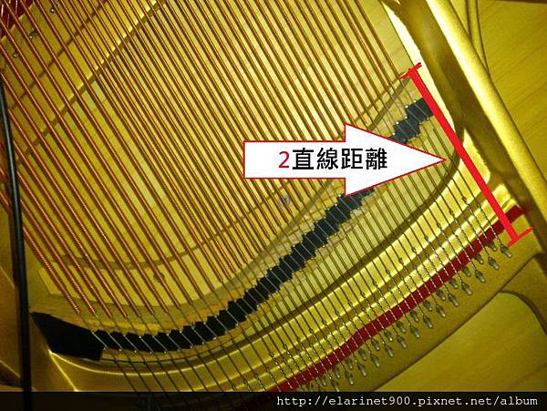 鋼琴除了銀色鋼弦之外,低音部有一片是金黃色的纏銅弦